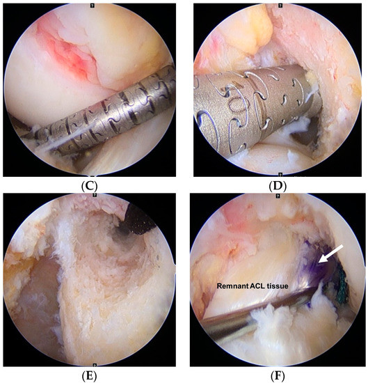 - Fitzgerald, J.; Saluan, P.; Richter, D.L.; Huff, N.; Schenck, R.C. Anterior Cruciate Ligament Reconstruction Using a Flexible Reamer System: Technique and Pitfalls. Orthop. J. Sport. Med. 2015, 3, 2325967115592875. [Google Scholar] [CrossRef]