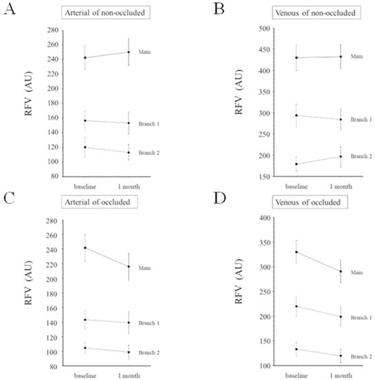 | Venous of the non-occluded region: branch 2 | 0.05 0.774 | 0.11 0.507 | −0.15 0.387 | 0.08 0.637 | −0.20 0.233 | −0.16 0.345 | 0.01 0.946 | −0.30 0.073 |
