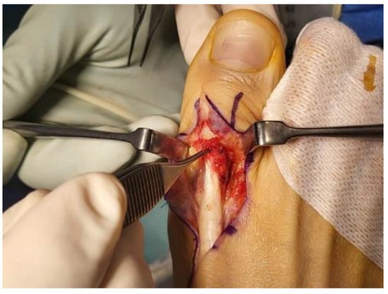 - Feeney, M.; Williams, R.; Stephens, M. Selective lengthening of the proximal flexor tendon in the management of acquired claw toes. J. Bone Joint Surg. Brit. Vol. 2001, 83, 335–338. [Google Scholar] [CrossRef]