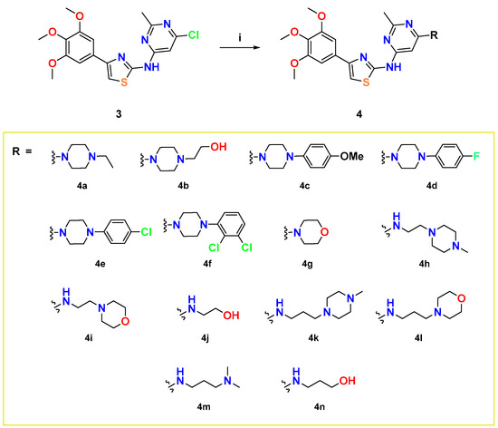 2.5. General Procedure for the Synthesis of N-(6-Substituted-2-methylpyrimidin-4-yl)-4-(3,4,5-trimethoxyphenyl)thiazole-2-amine (4a–4n)