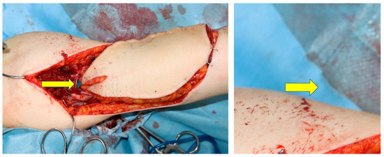 - Hong, J.P.; Koshima, I. Using perforators as recipient vessels (supermicrosurgery) for free flap reconstruction of the knee region. Ann. Plast. Surg. 2010, 64, 291–293. [Google Scholar] [CrossRef] [PubMed]