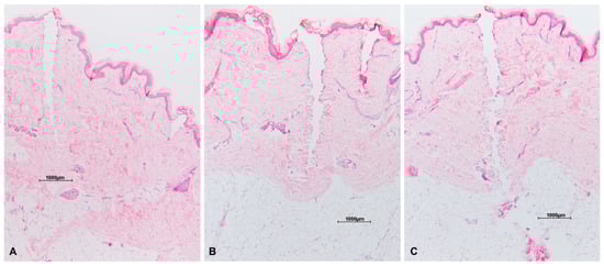 To assess the action depth of the SCAR3 scanner, a histological evaluation was carried out. Due to its deeper thickness than sheep skin [], human skin taken during abdominoplasty surgeries was employed. In particular, the male human abdomen was selected because it has the thickest skin layer [].