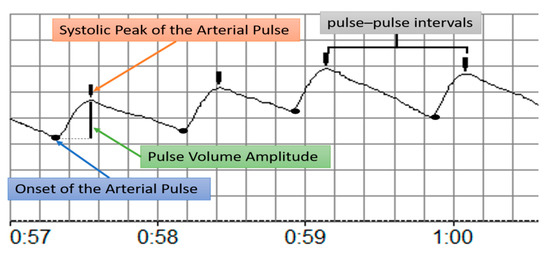 Many works have found that pulse rate variability (PRV), which is extracted from photoplethysmography (PPG) data, can serve as an alternative measurement of ANS activity [20,21,22]. PPG is a simple and low-cost optical measurement technique that can be employed to detect blood volume changes in the microvascular bed of a tissue. Furthermore, it is generally accepted that PPG can provide relevant information about the cardiovascular system, such as heart rate, arterial pressure, stiffness index, pulse transit time, pulse wave velocity, cardiac output, arterial compliance, and peripheral resistance [22].