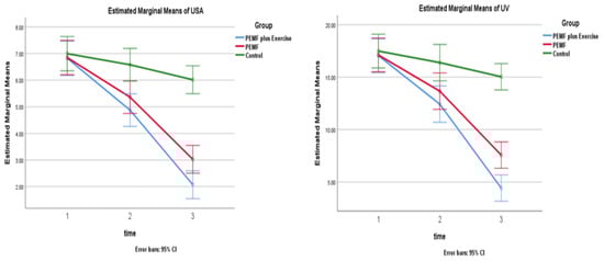 | Variables | PEMF + PRE Group | PEMF Group | Control Group | p-Value | ||||||