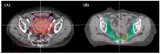 Cervical cancer is the fourth most common malignancy in women based on both incidence and mortality, although its incidence is declining due to advances in prevention and screening. Approximately 570,000 new cases and 310,000 deaths occur worldwide annually []. Radiation therapy (RT) is generally used as a primary treatment for cervical cancer because it responds well to radiation []. Overall, approximately 80% of patients with cervical cancer receive RT []. Patients receiving definitive RT have a favorable prognosis, with a 5-year overall survival (OS) of 80–90% for early-stage disease and 60–70% for advanced-stage disease [,]. After initial treatment, about 30–40% of patients experience disease recurrences and 50% of these are loco-regional recurrences within the conventional pelvic irradiation field [,]. Sommers et al. reported that the 5-year OS rate for patients with recurrent cervical cancer within the previously irradiated field was only 1% if they did not receive any treatment [].