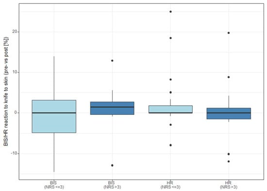 | BIS reaction to knife to skin (pre vs. Post [%]) | 0 (−4.8/3.2) | 1.5 (−0.3/2.7) | 0.682 |