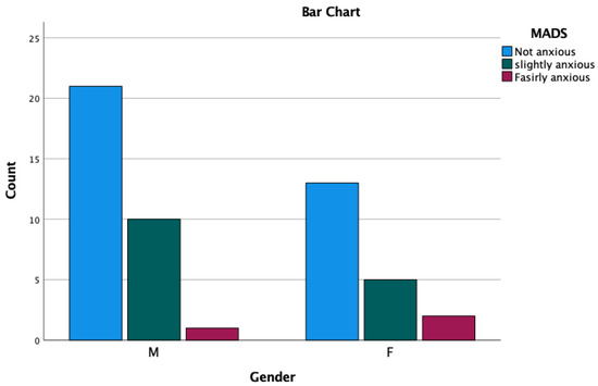 As stated in the previous studies, female patients are more anxious about dental treatment compared to male patients [22,23,24]. However, the contrasting report was also found where females showed insignificant lower MDAS scores compared to males [15], which might be due to the sample size and the age range of female patients who participated in the study. In this study, it exhibited that female patients were more anxious, but the difference in anxiety levels between males and females was insignificant. However, the total sample between males and females is different. Male participants are more than female participants (male = 32 and female = 20), which might result in more MDAS scores in male patients compared to female patients. A similar result was observed in the study by Singh et al. [15]. However, unlike this study, the mean age of the female participants is higher compared to the male participants in the study by Singh et al. [15]. Due to the higher mean age of the female patients, female patients showed less anxiety than their male counterparts in a few different studies [15,25,26]. Even though the MDAS score did not show any significant difference between gender, the current study showed that MDAS is significantly associated with VAS at different time points. Therefore, it could be indicated that dental anxiety is linked to the perception of pain.