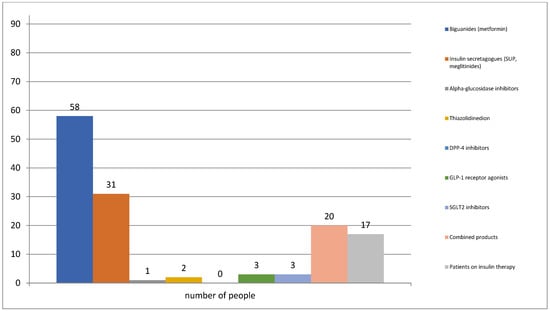 Prescribed pharmacotherapy for diabetes management among the observed group of patients.