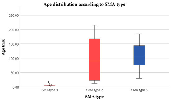 Age distribution at the initiation of the treatment according to SMA type.