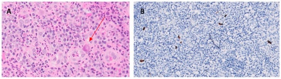 - Lin, J.; George, B. Primary Bone Marrow HIV-Associated Hodgkin Lymphoma Complicated by Hemophagocytic Lymphohistiocytosis. Genes 2022, 13, 1608. [Google Scholar] [CrossRef] [PubMed]