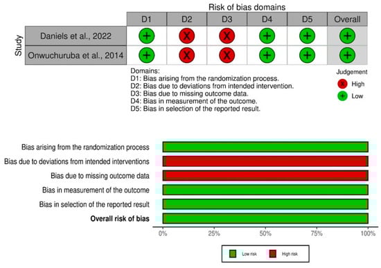 The quality assessment of the included studies was conducted using two different tools. The Newcastle–Ottawa Scale (NOS) was used for cohort studies, which assesses data based on three subscales: selection, comparability, and outcomes. For randomized controlled trials (RCTs), the Cochrane bias tool was employed. This tool evaluates the risk of bias in each study across various domains, such as random sequence generation, allocation concealment, blinding, incomplete outcome data, and other sources of bias. The judgments for each domain were categorized as “high risk”, “low risk”, or “unclear.” Two authors independently assessed each article, and any discrepancies were resolved through discussion and consensus. The detailed results of quality assessment are given in Table 3, Table 4 and Table 5 and Figure 2.