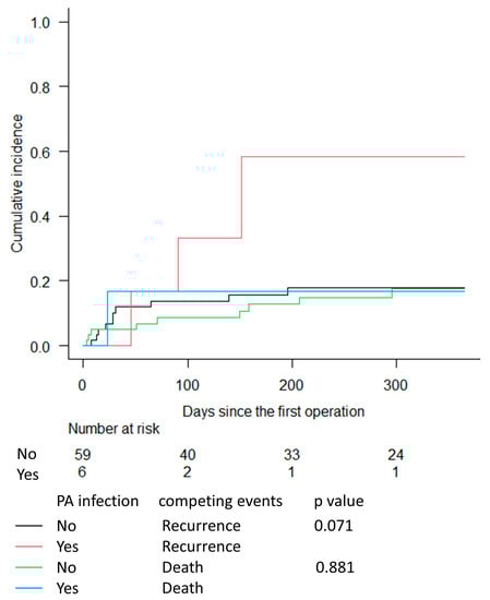 Chicago/Turabian StyleTseng, Yuan-Hsi, Chien-Chao Lin, Min Yi Wong, Chih-Chen Kao, Ming-Shian Lu, Chu-Hsueh Lu, and Yao-Kuang Huang. 2023. "Pseudomonas aeruginosa Infections Are Associated with Infection Recurrence in Arteriovenous Grafts Treated with Revision" Medicina 59, no. 7: 1294. https://doi.org/10.3390/medicina59071294