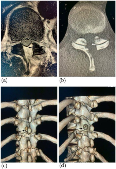 - Baba, S.; Shiboi, R.; Yokosuka, J.; Oshima, Y.; Takano, Y.; Iwai, H.; Inanami, H.; Koga, H. Microendoscopic Posterior Decompression for Treating Thoracic Myelopathy Caused by Ossification of the Ligamentum Flavum: Case Series. Medicina 2020, 56, 684. [Google Scholar] [CrossRef]