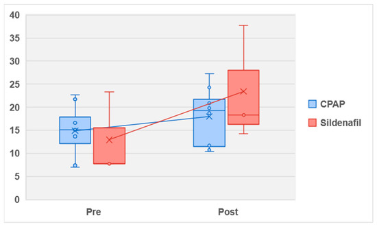 After CPAP, patients could experience performance improvement related both to subjective outcomes such as depression and anxiety scores or vascular and inflammatory ameliorations compared to baseline. Sforza et al. [1] found that chronic intermittent hypoxia in mice and OSA patients led to increased reactive oxygen species, inflammation, and apoptosis in the penis, which are mechanisms that could contribute to ED.