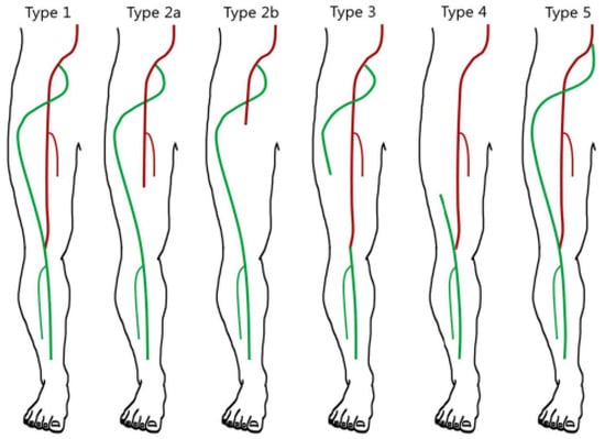 - Senior, H.D. The development of the arteries of the human lower extremity. Am. J. Anat. 1919, 25, 54–95. [Google Scholar] [CrossRef]