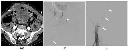 - Augustin, A.M.; Fluck, F.; Bley, T.; Kickuth, R. Endovascular Therapy of Gastrointestinal Bleeding. Rofo 2019, 191, 1073–1082. [Google Scholar] [CrossRef]