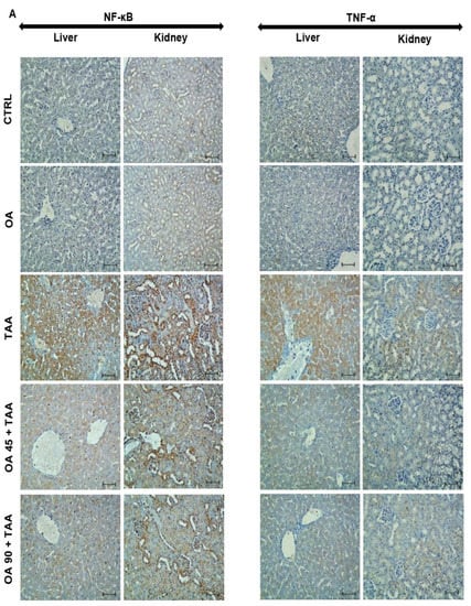 3.5. NF-κB/TNF-α Inflammatory Signaling Pathway in the Kidney and Liver