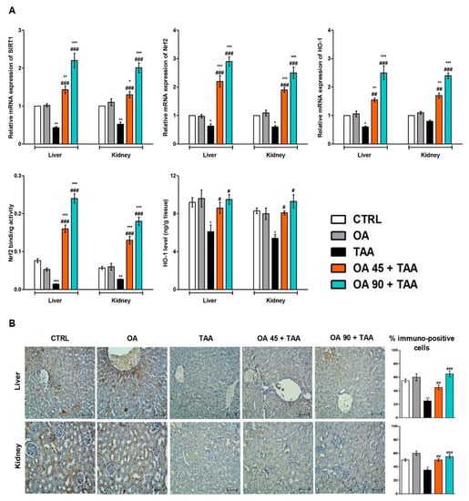 3.7. SIRT1/Nrf2/HO-1 Signaling in Liver and Kidney