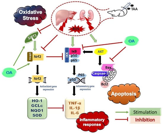 Chicago/Turabian StyleAlqrad, Manea A. I., Dina S. El-Agamy, Sabrin R. M. Ibrahim, Alaa Sirwi, Hossam M. Abdallah, Essam Abdel-Sattar, Ali M. El-Halawany, Wael M. Elsaed, and Gamal A. Mohamed. 2023. "SIRT1/Nrf2/NF-κB Signaling Mediates Anti-Inflammatory and Anti-Apoptotic Activities of Oleanolic Acid in a Mouse Model of Acute Hepatorenal Damage" Medicina 59, no. 7: 1351. https://doi.org/10.3390/medicina59071351