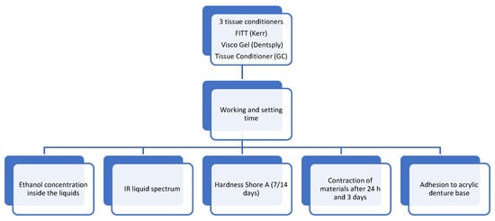 - Prasad, D.; Anupama Prasad, B.; Rajendra Shetty, V.; Shashidhara Krishna, D. Tissue Conditioners: A Review. Nitte Univ. J. Health Sci. 2014, 4, 156–161. [Google Scholar] [CrossRef]