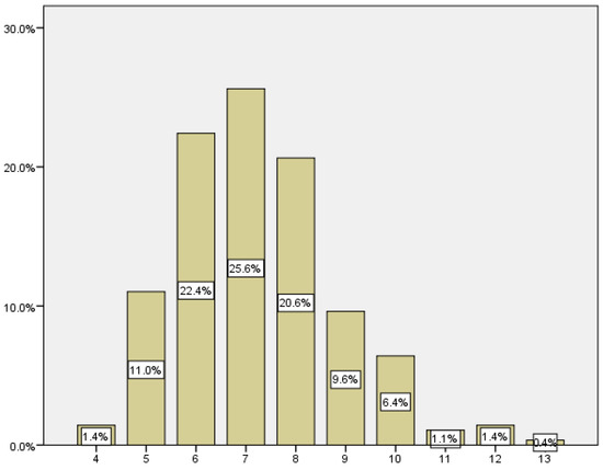 We recorded the gestational age at which the pregnancy loss occurred by reviewing the emergency room visits and the outpatient follow-up. As we can see in the following table (Table 3), we found that 68.6% of the miscarriages occurred between 6 and 8 weeks of gestation, 22.4% in the 6th week, 25.6% in the 7th week, and 20.6% in the 8th week (Figure 2).