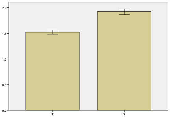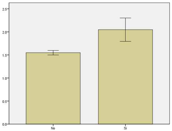 We reviewed the number of times that patients consulted for first-trimester bleeding and assessed whether or not the pregnancy resulted in miscarriage. The average number of visits to the emergency room among patients who miscarried was 1.92 ± 0.923, compared to 1.52 ± 0.794 among those who did not (p < 0.0001) (Figure 4). This means that the patients who experienced pregnancy loss the most were those who had previously visited the emergency department on more occasions.