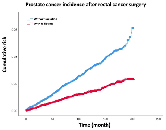 Ionizing radiation is a potent carcinogen, inducing malignant tumors through DNA damage. Some studies found that the exposure to ionizing radiation may cause CML. Venkata S K Manem demonstrated that the increase in second cancer risks is directly correlated with increasing values of the linear energy transfer of charged particles (including protons, alpha particles, and heavy ions like carbon and neon). On the other hand, when undergoing rectal cancer radiotherapy, radiation may have a certain coverage of the prostate area. Thus, whether it may also have a certain impact on the incidence of prostate cancer has not been studied yet. Although several studies have investigated the association between RT and SPM in rectal cancer patients, the conclusions are different [9,10]. Here, we use the SEER database to compare the effects of radiation on the incidence of second primary tumors based on the large number of population studies.