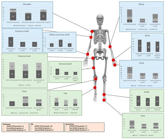 Distribution of fractures in the COVID-19 free and COVID-19 periods.