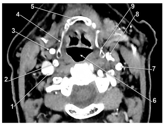 Manta, M.D.; Rusu, M.C.; Hostiuc, S.; Vrapciu, A.D.; Manta, B.A.; Jianu, A.M. The Carotid–Hyoid Topography Is Variable. Medicina 2023, 59, 1494. https://doi.org/10.3390/medicina59081494