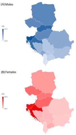 Based on the GBD 2019 study, the world is separated into 21 regions (one of them is the region of Central Europe) according to epidemiological similarities and geographical proximity. According to the GBD 2019 study, the Central European region includes 13 countries (Albania, Bosnia and Herzegovina, Bulgaria, Croatia, Czechia, Hungary, North Macedonia, Montenegro, Poland, Romania, Serbia, Slovakia, and Slovenia) comprising about 115 million inhabitants [26].