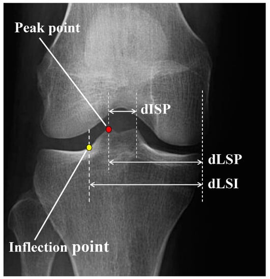 This study had some limitations. First, this study investigated osteoarthritic knees in an Asian population, and the results may be different from those of a Western population. However, the location of the peak and inflection points in the lateral tibial spine was presented as a percentage of the entire tibial plateau width in this study, which may remove the effect of individual size differences in the tibial plateau and tibial spine. Further anatomical studies in different races are necessary to generalize the results of this study. Second, in contrast to the peak point method, the method used to define the intersection point between the lateral tibial spine and the tibial plateau can differ between examiners. The different values of the intersection point in the lateral tibial spine and tibial plateau between Jiang et al.’s study (bottom point) and this study (inflection point) may be related to different measurement methods, and more effort to reach a consensus is required. Third, in this study, the correlation between dLSP and dLSI and diverse radiologic parameters was not investigated. The femoral notch width, which is known to be related to the size of the ACL footprint, can also be a predictor for dLSP and dLSI. Thus, it is an interesting topic for future study. Fourth, this study was conducted using a standing knee AP image, which may be different from the actual situation in which HTO planning is performed in the long leg view. However, in our hospital, a patient’s posture is identical between the standing knee AP view and the long leg view, and we believe that radiologic parameters related to the lateral tibial spine may not be different between the standing knee AP view and the long leg view.