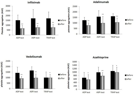 Chicago/Turabian StylePeric, Sasa, Zeljko Todorovic, Nebojsa Zdravkovic, Andjela Gogic, Stefan Simovic, Vesna Grbovic, Mladen Maksic, Stefan Jakovljevic, Olivera Milovanovic, and Natasa Zdravkovic. 2023. "Treatment of Ulcerative Colitis: Impact on Platelet Aggregation" Medicina 59, no. 9: 1615. https://doi.org/10.3390/medicina59091615