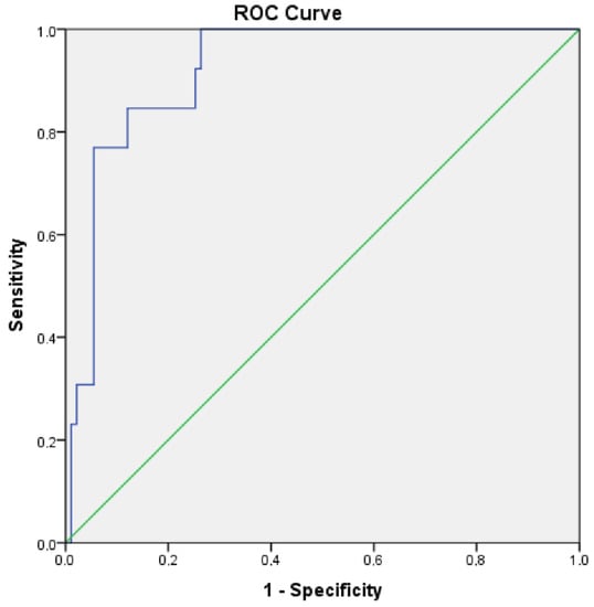 All patients in this study were prepared for surgery by radiological evaluation after neoadjuvant systemic therapy. Total gastrectomy was performed as a surgical procedure in the vast majority of patients. Total gastrectomy was performed in 85 patients (82%), while subtotal gastrectomy was performed in 19 (18%) patients. After surgery, both the pCR and the degree of response were evaluated in patients without a pathological response. As a result of the evaluation, pCR was observed in 13 (12.5%) of all patients included in this study. There was no pathological response in the remaining 91 patients, and <10% vital tumor cells were detected in 11 of these patients. It was observed that 22 of them had 10–50% vital tumor cells, and 58 of them had >50% vital tumor cells. The microsatellite status of the patients who achieved a pathological response was also evaluated. None of the patients in the MSI-H group had pCR. On the other hand, pCR was detected in 11 of the patients in the MSS group. It was observed that MSI status was not specified in the pathology report of two patients who achieved a pCR. This pathological response assessment is shown in Table 2. It was obtained by ROC curve analysis using parameters evaluated before neoadjuvant systemic therapy. This analysis is illustrated in Figure 1 below. To predict pCR, a PIV value of 53.9 was determined as the cut-off value with a sensitivity and specificity of 84.6%. Univariate Cox regression analysis showed that pretreatment PIV score is important for predicting pathological response after neoadjuvant systemic therapy. In 11 of 13 patients who achieved a pCR, the PIV value obtained as a result of the laboratory parameters measured before the treatment was found to be below 53.9. However, there were two patients in total who had a PIV score above this cut-off value and achieved a pCR. The difference between these groups was statistically significant (p < 0.05). Similarly, the relationship between PIV and relapse status and overall survival was also evaluated. Similar to pCR, there was a statistically significant correlation between PIV score in both recurrence and survival. While 11 (44%) of the patients with a PIV score below the cut-off value of 53.9 relapsed, 52 (66.7%) of the patients with a PIV score above 53.9 relapsed (p < 0.05). The OS of the patients whose PIV score was below the cut-off value of 53.9 was 40.8 ± 3.9 months, while the overall survival of the patients above this value was 33.6 ± 2.8. These survival times also differed statistically significantly (p < 0.05). Information showing the relationship between PIV score and pathological response, recurrence rates, and survival is given in Table 3.