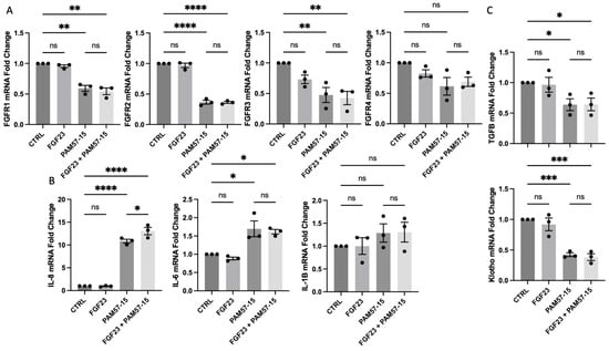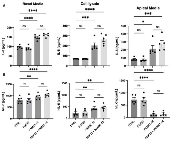 3.1. FGF23 Did Not Further Increase the Expression of Pro-Inflammatory Markers in the PA-Infected CF Bronchial Epithelium