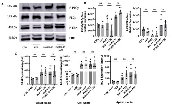 3.4. Isoform-Specific FGFR Blockade Did Not Alter the Phosphorylation of PLCγ or ERK or Pro-Inflammatory Cytokine Expression in PA-Infected CFBEs