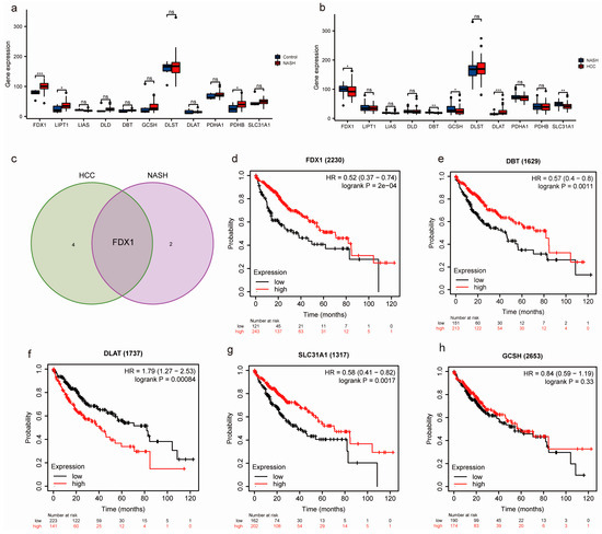 An online survival analysis tool (Kaplan–Meier plotter (kmplot.com)) was used to analyze the effects of FDX1, DBT, DLAT, SLC31A1, and GCSH in patients with liver cancer [15]. The impact of FDX1 from NASH to HCC patients was analyzed using GSEA [16].