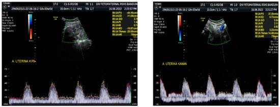 The Doppler examination also revealed a notching of the right and left uterine arteries, which is a marker of spiral artery remodeling failure, causing early-onset severe preeclampsia [