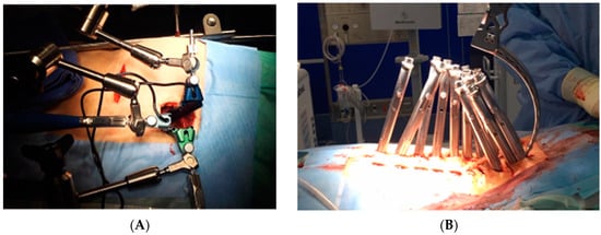 - Woods, K.; Billy, J.B.; Hynes, R. Technical description of oblique lateral interbody fusion at L1–L5 (OLIF25) and at L5–S1 (OLIF51) and evaluation of complication and fusion rates. Spine J. 2017, 17, 545–553. [Google Scholar] [CrossRef]