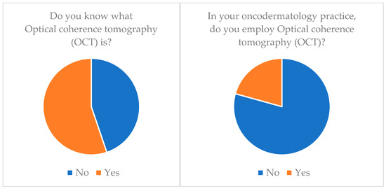 - Confocal reflectance microscopy (RCM): Only 55.2% (n = 16) of our cohort knew about this technology and only 20.7% (n = 6) applied it (Table 3).