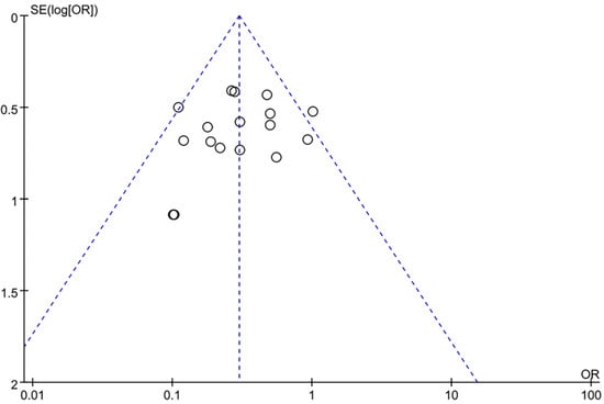 Publication bias was assessed using a funnel plot, which was evaluated for the total effective rate reported in 17 studies. A significant symmetry was observed for the distribution in the funnel plots (Figure 7).