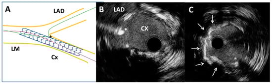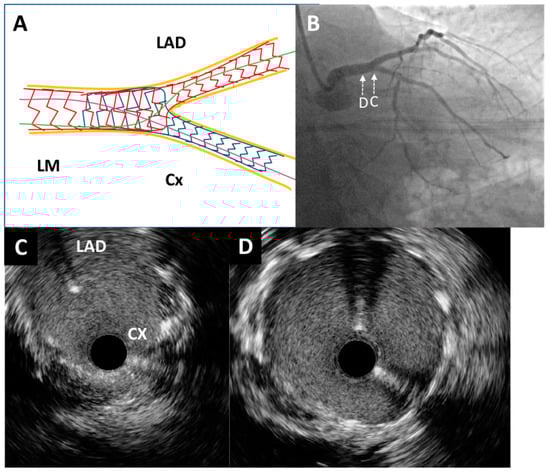 - Medina, A.; Martin, P.; Suarez de Lezo, J.; Amador, C.; Pan, M.; Melian, F.; Hernandez, E.; Burgos, L.; Ojeda, S.; Ortega, J.R.; et al. Vulnerable carina anatomy and ostial lesions in the left anterior descending coronary artery after floating-stent treatment. Rev. Esp. Cardiol. 2009, 62, 1240–1249. [Google Scholar] [CrossRef] [PubMed]
