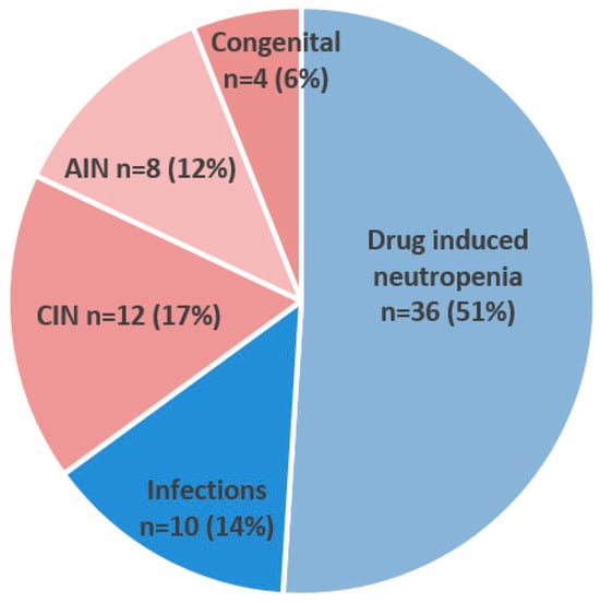 Chicago/Turabian StyleNjue, Linet, Naomi Porret, Annatina Sarah Schnegg-Kaufmann, Luca Francesco Varra, Martin Andres, and Alicia Rovó. 2024. "Isolated Severe Neutropenia in Adults, Evaluation of Underlying Causes and Outcomes, Real-World Data Collected over a 5-Year Period in a Tertiary Referral Hospital" Medicina 60, no. 10: 1576. https://doi.org/10.3390/medicina60101576