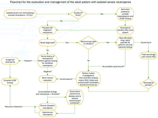 - Palmblad, J.; Papadaki, H.A. Chronic idiopathic neutropenias and severe congenital neutropenia. Curr. Opin. Hematol. 2008, 15, 8–14. [Google Scholar] [CrossRef]