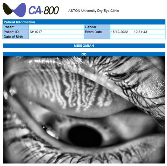 - Ngo, W.; Srinivasan, S.; Schulze, M.; Jones, L. Repeatability of grading meibomian gland dropout using two infrared systems. Optom. Vis. Sci. Off. Publ. Am. Acad. Optom. 2014, 91, 658–667. [Google Scholar] [CrossRef]
