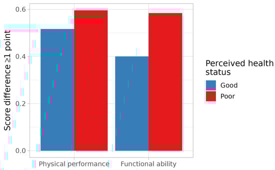 Perceived health status (PHS) is a subjective assessment that reflects an individual’s overall sense of health and well-being []. It has been shown that PHS is linked with health outcomes in older adults, including mortality [,] and risk of hospitalization []. We have also previously shown that PHS can be used to predict resilience in older people after a self-reported stressful health event [].