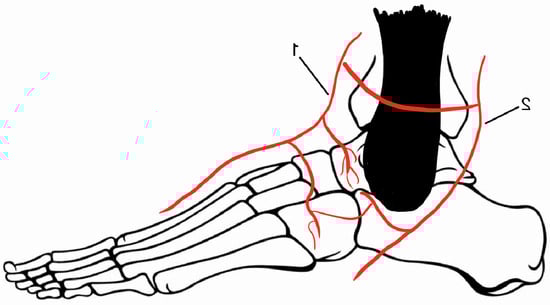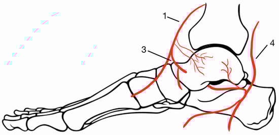 - Gelberman, R.H.; Mortensen, W.W. The arterial anatomy of the talus. Foot Ankle 1983, 4, 64–72. [Google Scholar] [CrossRef]