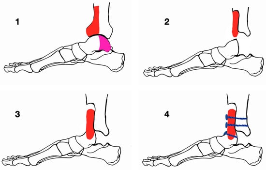 - Kodama, N.; Takemura, Y.; Shioji, S.; Imai, S. Arthrodesis of the ankle using an anterior sliding tibial graft for osteoarthritis secondary to osteonecrosis of the talus: A comparison of vascularised non-vascularised grafts. Bone Jt. J. 2016, 98, 359–364. [Google Scholar] [CrossRef]