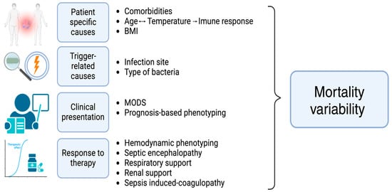 Given the high heterogeneity in sepsis, various studies relate the individual patient factors and comorbidities and the variability of clinical outcomes and response to various therapeutic strategies [].