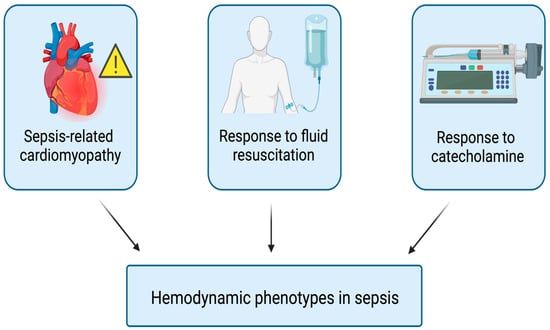 Septic shock, characterized by hemodynamic instability leading to multi-organ dysfunction and potentially fatal outcomes, requires a nuanced understanding of hemodynamic phenotypes to enhance targeted therapeutic strategies. There are three main factors that affect the hemodynamic variability in sepsis and septic shock: sepsis-related cardiomyopathy, response to fluid resuscitation, and differentiated response to catecholamines (Figure 3).
