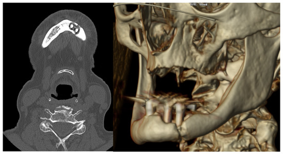10. Kinoshita, H.; Ogasawara, T.; Nishibata, T.; Yoshioka, M.; Makihara, R.; Hashimoto, Y. Dental Implants Acting as External Fixation for the Fracture of Severe Atrophic Mandible: A Case Report. J. Maxillofac. Oral Surg. 2024, 23, 290–293. [Google Scholar] [CrossRef]
